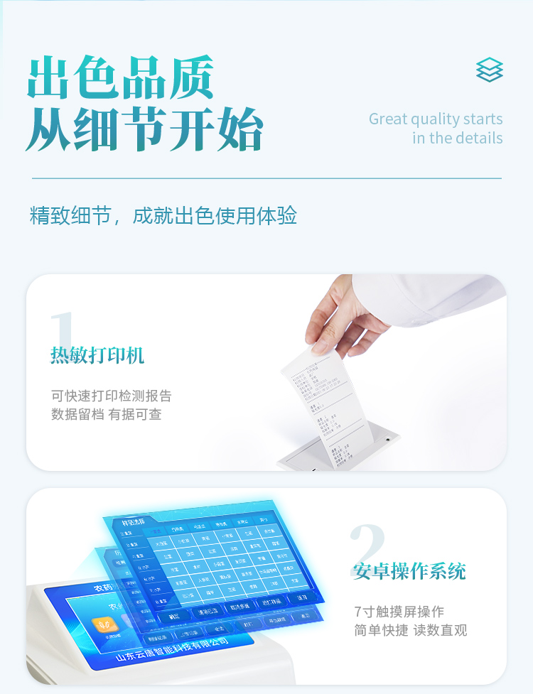 山東云唐智能科技有限公司生產(chǎn)的農(nóng)藥殘留檢測儀廣泛應用于主要用于蔬菜、水果、茶葉、糧食、農(nóng)副產(chǎn)品等食品中農(nóng)藥殘留的快速檢測,依據(jù)國標GB/T5009.199-2003進行檢測,適用于果蔬茶生產(chǎn)基地以及農(nóng)貿(mào)批發(fā)銷售市場現(xiàn)場檢測,餐館、學校、食堂、家庭果蔬加工前的安全速測等。