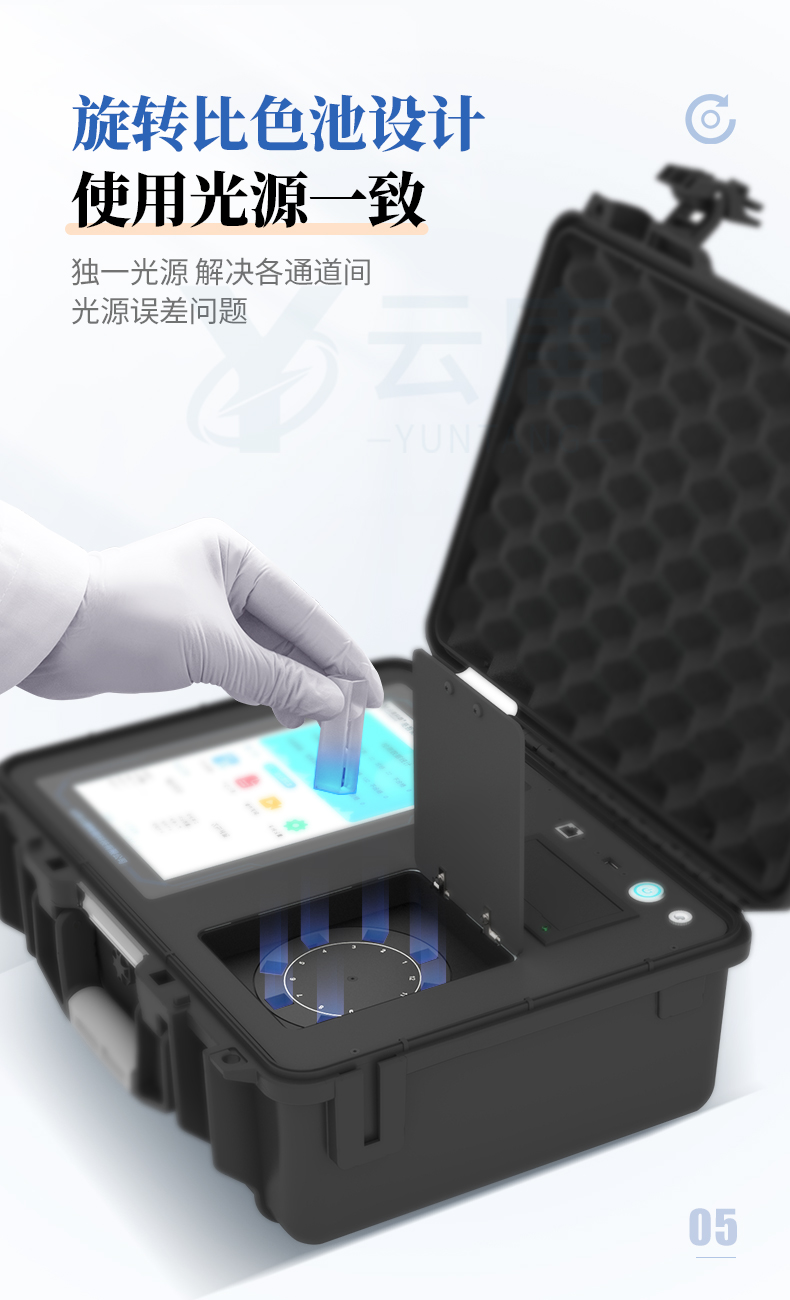 3.一體化便攜式快檢設備,采用交直流兩用供電方式,可連接車載電源,配備6ah大容量充電鋰電池,可以滿足現(xiàn)場及流動檢測使用的需求。儀器尺寸:43×35×20cm, 主機凈重:5.1kg
