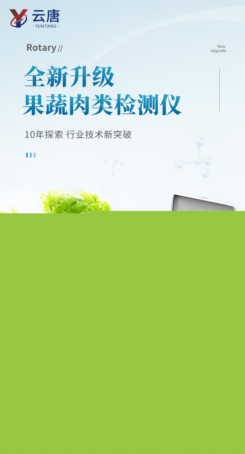 山東云唐智能科技有限公司生產(chǎn)的果蔬肉類檢測儀,采用臺式一體化設(shè)計,可快速檢測幾十種項目,包含各種蔬菜水果中有機(jī)磷和氨基甲酸酯類農(nóng)藥殘留,病害肉診斷:肉中組胺、揮發(fā)性鹽基氮;各種肉食品中瘦肉精激素類殘留、抗生素、獸藥殘留等現(xiàn)場的定性定量檢測。