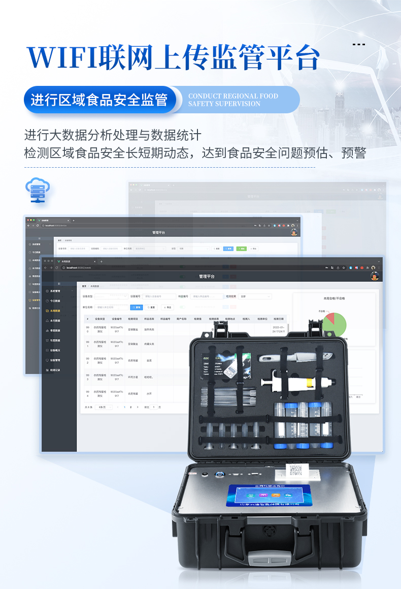 3.☆數(shù)據(jù)可局域網(wǎng)和互聯(lián)網(wǎng)數(shù)據(jù)上傳,可構(gòu)建食品安全監(jiān)管系統(tǒng)平臺,支持LIMS 系統(tǒng),內(nèi)置USB接口,可擴(kuò)展外設(shè);