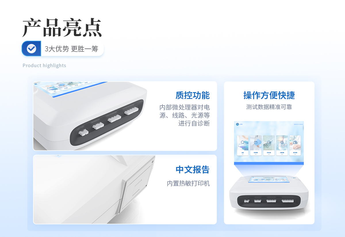 | 1、 Android觸控系統(tǒng)結(jié)合大尺寸高清屏幕,界面友好,操作簡(jiǎn)單流暢,無(wú)需外接設(shè)備; | 2、 ★單卡+多聯(lián)卡設(shè)計(jì)方案,顯著提升檢測(cè)效率,滿(mǎn)足批量樣本快速處理需求; | 3、 可以500萬(wàn)條檢測(cè)結(jié)果,支持按日期靈活查詢(xún)、預(yù)覽、刪除結(jié)果,并生成多樣化專(zhuān)業(yè)報(bào)告。 | 4、 內(nèi)置熱敏打印機(jī),檢測(cè)完成即可現(xiàn)場(chǎng)打印標(biāo)準(zhǔn)報(bào)告,提升工作效率。 | 5、 關(guān)鍵部件實(shí)時(shí)自診斷功能,保障儀器長(zhǎng)期穩(wěn)定運(yùn)行。 | 6、 高速有線(xiàn)/無(wú)線(xiàn)網(wǎng)絡(luò)及藍(lán)牙,構(gòu)建完善的數(shù)據(jù)監(jiān)控平臺(tái),實(shí)現(xiàn)數(shù)據(jù)實(shí)時(shí)上傳、遠(yuǎn)程查詢(xún)、統(tǒng)計(jì)分析和監(jiān)管協(xié)同。 | 7、 豐富的接口設(shè)計(jì),輕松連接電腦、U盤(pán)、網(wǎng)絡(luò)及上位機(jī)系統(tǒng),支持U盤(pán)導(dǎo)出。 | 8、 孵育模塊為特定試紙條反應(yīng)提供**溫度環(huán)境。 | 9、 流線(xiàn)型結(jié)構(gòu),緊湊輕便,兼顧實(shí)驗(yàn)室耐用性與檢測(cè)需求。 | 10、 二維碼掃描錄入樣本信息,避免人工錯(cuò)誤。 | 11、 插卡判斷:檢測(cè)卡未插入檢測(cè)通道不能檢測(cè) | 12、 內(nèi)置質(zhì)控功能,可設(shè)備送檢、設(shè)備自檢、試劑卡自檢 | 13、 檢測(cè)方式:孵育檢測(cè)、即時(shí)檢測(cè)(對(duì)檢測(cè)數(shù)據(jù)復(fù)檢核實(shí)) | 14、 檢測(cè)曲線(xiàn):可以對(duì)試劑卡的檢測(cè)核驗(yàn),防止誤判 | 15、 檢測(cè)結(jié)果:報(bào)告出檢測(cè)項(xiàng)目、被測(cè)物質(zhì)的濃度、檢測(cè)單位、被檢查單位、檢驗(yàn)員、檢測(cè)時(shí)間、檢測(cè)限等信息可在觸摸屏上顯示,可通過(guò)儀器內(nèi)置打印機(jī)輸出 | 16、 項(xiàng)目管理:支持檢測(cè)項(xiàng)目拓展功能 | 17、 界面設(shè)置:可修改標(biāo)題和頁(yè)尾信息,靈活展示儀器信息 |
